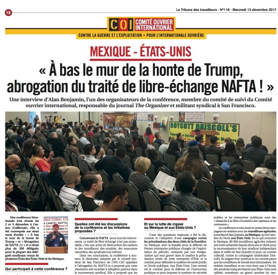 PRESENTATION On December 2-3, 2017, the Binational Conference to Cancel NAFTA, Tear Down the Wall of Shame / End…